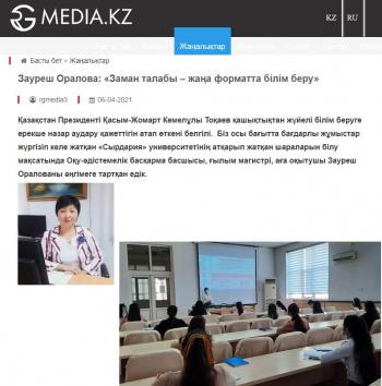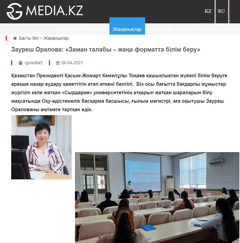 It is known that the President of Kazakhstan Kassym-Zhomart Kemelovich Tokayev noted the need to pay special attention to systematic distance education. In order to get acquainted with the activities of the University "Syrdarya", which is working in this direction, we interviewed the head of the Educational and Methodological Department, Master of Science, Senior Lecturer Zauresh Oralova.
