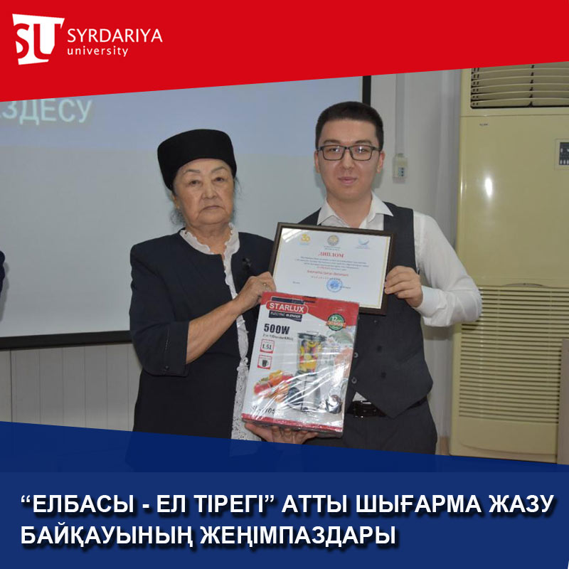 Karzhaubai Erasyl, a 4th year student of the Faculty of Information Technology and Natural Sciences, won the 2nd place in the essay contest "Elbasy - El tiregi" organized by the Youth Resource Center of the Department of Internal Policy of Zhetysai district on December 1. Zeilbek Nurbek, a student of the Faculty of Arts, took the 3rd place.