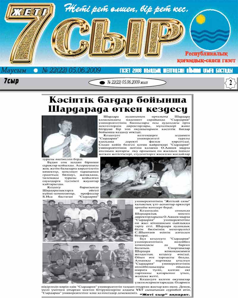 At the end of the meeting, Mr. O.Ayashev presented the principals of Shardara schools with a booklet issued for the tenth anniversary of the “Syrdariya” University. The head of the education department of the Shardara region S.Shyntaev expressed gratitude.