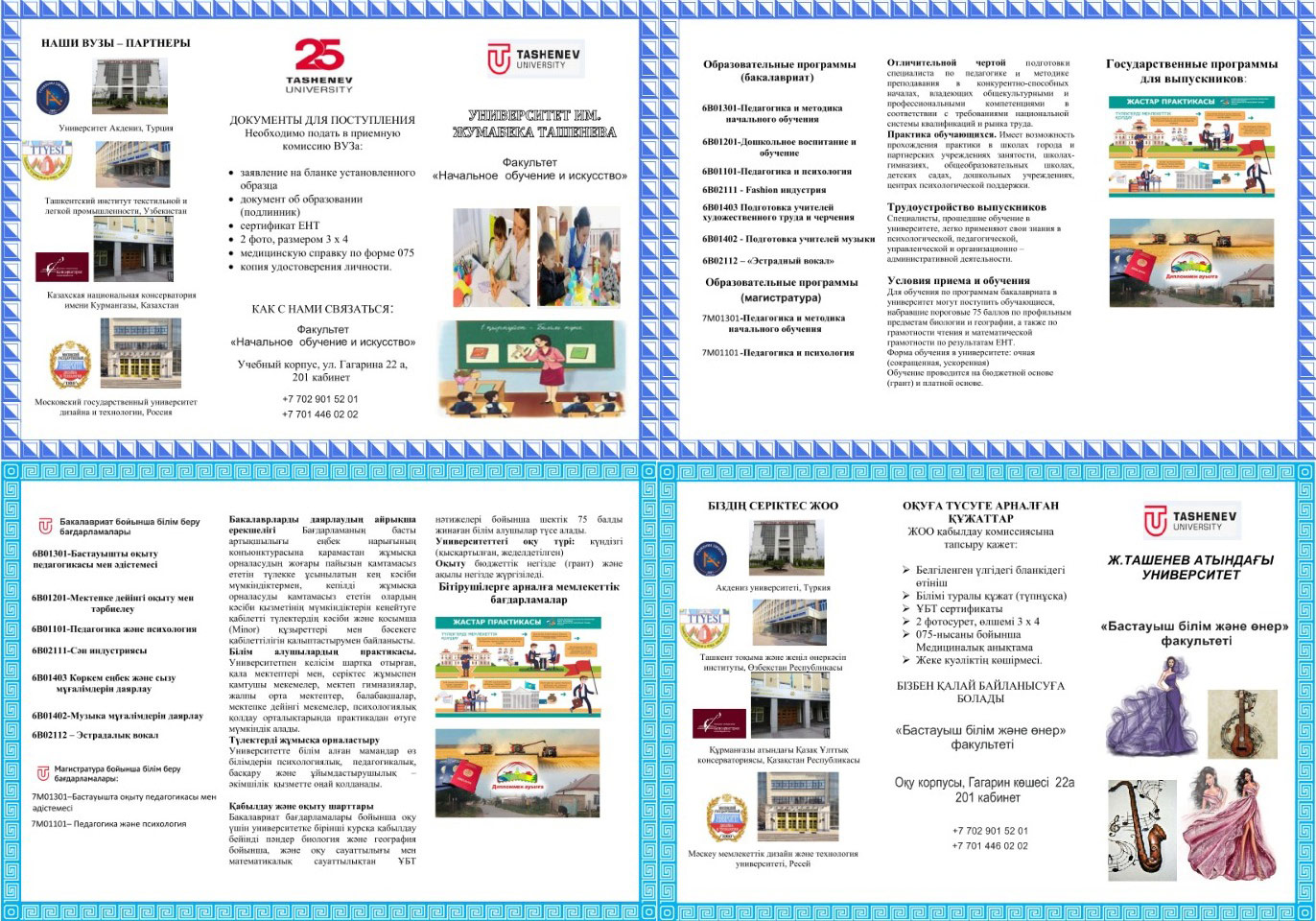 Талапкерлерге факультет тарапынан дайындалған буклеттер таратылып, университетімізде білікті мамандар даярлайтын білім беру бағдарлаламалары туралы мағлұматтар толық берілетін болады.