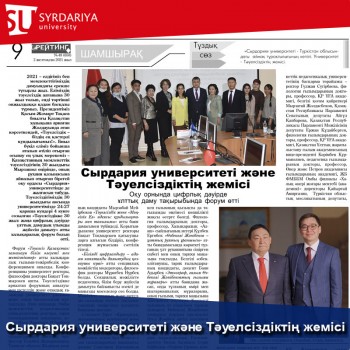 2021 - елдігіміз бен мемлекеттігіміздің дамуындағы ерекше тұғырлы жыл. Еліміздің тәуелсіздік алғанына 30 жыл толып, енді төртінші онжылдыққа қадам басқалы тұрмыз. Президентіміз Қасым-Жомарт Тоқаев биылғы Қазақстан халықына арнаған Жолдауында атап көрсеткендей, «Тәуелсіздік - біздің ең қастерлі құндылығымыз!». Биыл бүкіл еліміз бойынша аталып өтіліп отырған осынау ең үлық мерекеміз - Қазақстанның мемлекеттік тәуелсіздігінің 30 жылдығы Мырзашөл өңірінде, оның рухани қазынасына айналып отырған бірегей оқу ордасы «Сырдария» университетінде де жалғасын табуда. Тәуелсіздігіміздің 30 жылдығы аясында университетімізде 24-27 қараша күндері 4 күнге созылған «Тәуелсіздікке 30 жыл: жаңа цифрлық дәуірде үлттық дамудың үтымды жүйесін дамыту» атты халықаралық форум болып өтті.