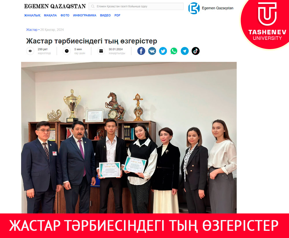 Қазіргі жаһандану үрдісін жіті бақылап отырған Мемлекет басшысы Қ.К. Тоқаевтың тікелей қолға алуымен жаңа Қазақстанның жарқын болашағын жалынды жастардың үлес салмағымен құру үшін нақты қадамдар мен кешенді бағдарламалар жүзеге асырылуда. Президентіміз Қасым-Жомарт Кемелұлы халыққа арнаған әр Жолдауында, Үкіметтің кеңейтілген отырыстарында, кездесулерде жастар тәрбиесін жүйелеу, білім берудің әлемдік стандарттарын қамту, оларды білім алумен қатар еңбекке тарту мәселесін алға тартып, назарынан тыс қалдырған емес. Президент 2024 жылдың 3 қаңтарында қазақ баспасөзі «Egemen Qazaqstan» газетіне берген ауқымды сұхбатында өз сөзін қорытындылай келе: «Біз озық ойлы ұлт ретінде тек қана алға қарауымыз керек» деді. Бұл қазақстандықтар үшін әрбір азамат өз елінің патриоты ретінде ортақ отанымыздың гүлденуіне өз үлесін қосуы тиіс, орта, жоғары және жоғары оқу орнынан кейінгі білім беру ұйымдары үшін тал шыбықтай буыны қатпаған өскелең жастарға терең тәлім беруді жүктейді.