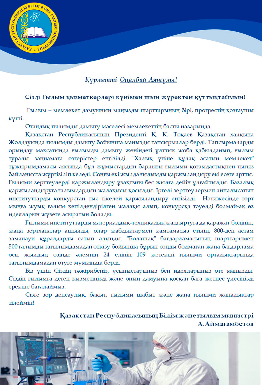 Сізді Ғылым қызметкерлері күнімен шын жүректен құттықтаймын!