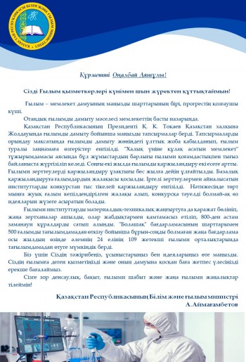 Қазақстан Республикасының Білім және ғылым министрі А.Аймағамбетов