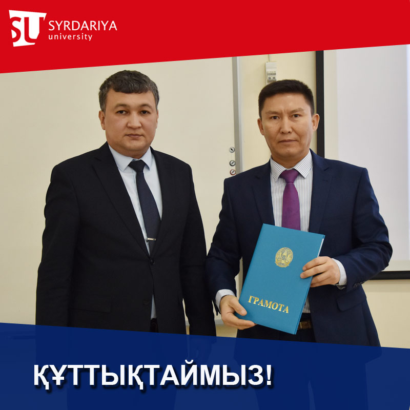 Білім мен ғылымның дамуына қосқан елеулі үлесі және кадр даярлаудағы жоғары жетістіктері үшін Түркістан облыстық мәслихатының хатшысы Қ.Балабиев «Сырдария» университетінің профессор-оқытушылары мен қызметкерлерін естелік грамоталармен марапаттады:
