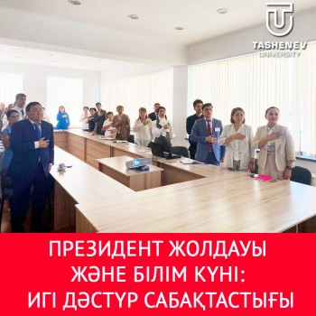 1 қыркүйек – бүкіл ұрпақты біріктіретін Білім мерекесі. Бұл – жаңа оқу жылының бастауы және жас өркеннің өмірдегі жаңа кезеңі білім әлеміне қадам басуы. Мемлекет басшысының Білім күнімен қатар келген биылғы Жолдауын Tashenev University ұжымы біргелікте тыңдап, жан-жақты қолдау білдірді. Мемлекет басшысы Жолдауда экономикалық даму, мемлекеттік басқару ісін жаңғырту, өнеркәсіпті күшейту, білім және ғылым, мәдениет, бизнес салаларына айқын тоқталды.