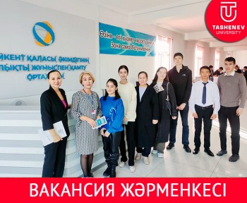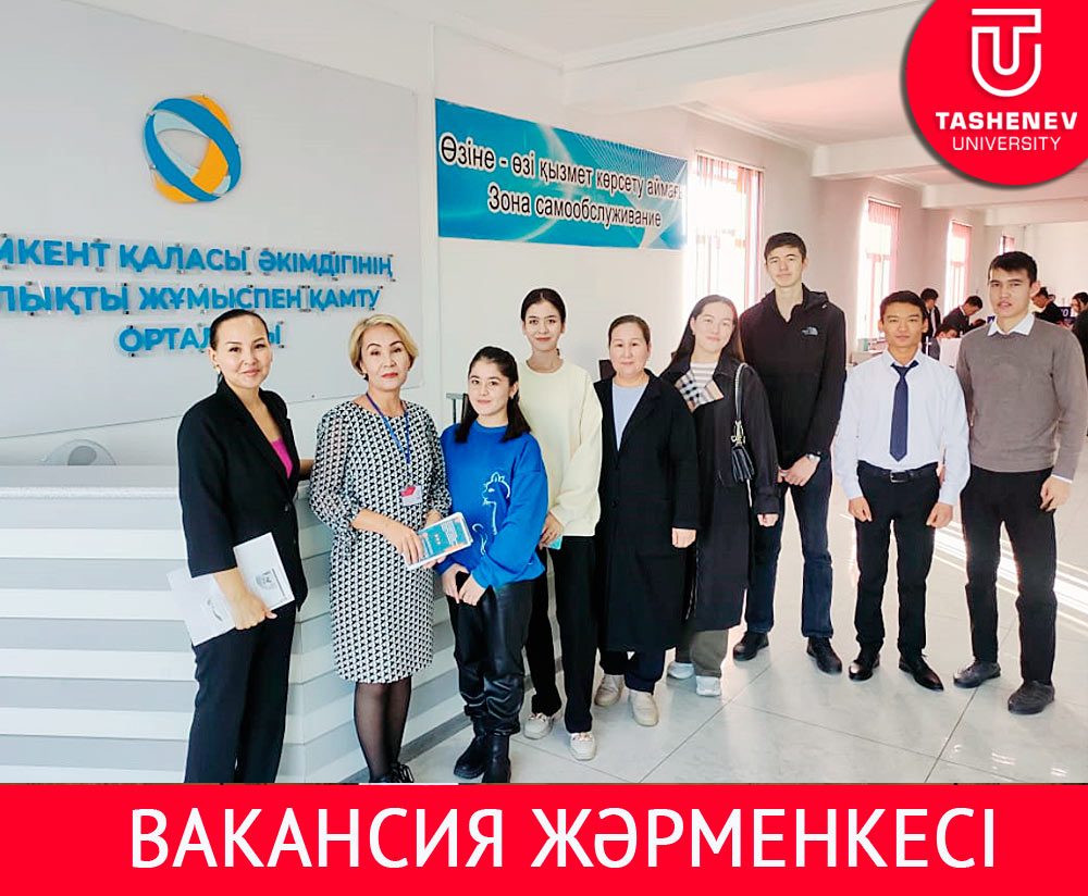 Ж.А.Ташенев университетінің мансап және жұмыспен қамту орталығының басшысы Халикова Роза Орунбасаровна және жұмысқа орналастыру бойынша жауапты мамандарымен бірге "Вакансия жәрменкесіне" жұмыссыздарды жұмысспен қамту. тұрақты жұмысқа орналасуына жәрдемдесу мақсатында бітіруші түлектерді қатыстырды.