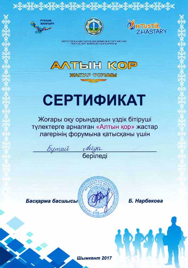"Сырдария" университетінің студенттері «Алтын қор» жастар форумына қатысып, сертификаттарға ие болып қайтты.