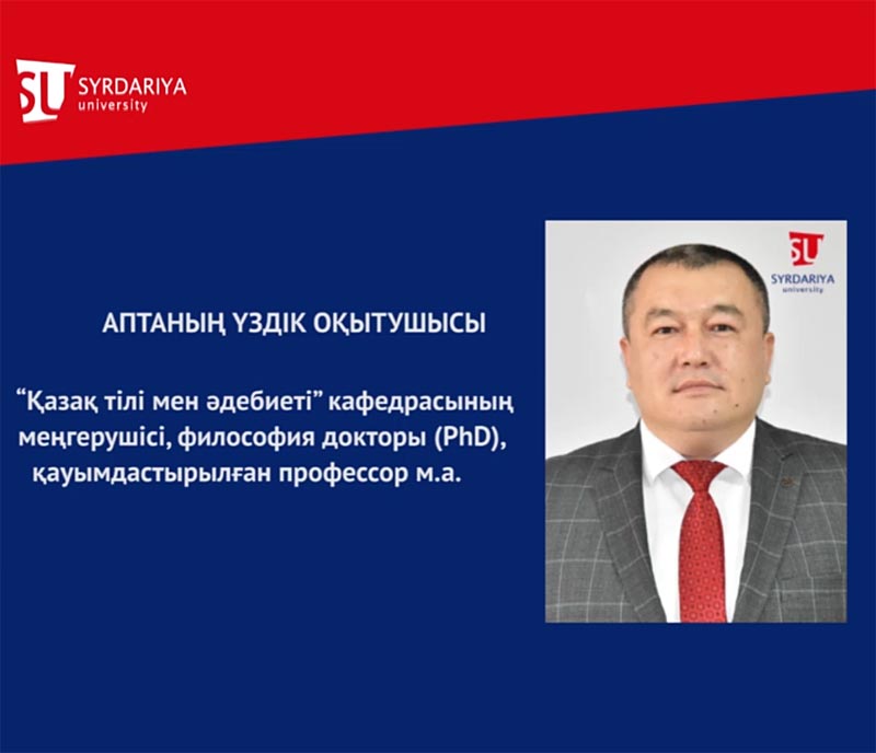 Syrdariya University "Қазақ тілі мен әдебиеті" кафедрасының меңгерушісі, философия докторы (PhD), қауымдастырылған профессор м.а.