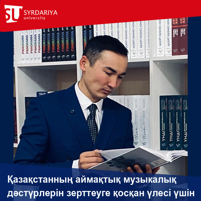 Қазақстан жоғары оқу орындары арасында өткізілген Республикалық студенттердің ғылыми-зерттеу жұмыстары конкурсында Sirdariya University «Дизайн және өнер» факультеті, «Өнер» кафедрасының 5В010600 – «Музыкалық білім» білім беру бағдарламасының 3 курс студенті Мамадияр Мұстафаәли СҒЗЖ-2021 конкурстық комиссия шешімімен «Өнер» бағыты бойынша «Бөрі Исаның шығармашылық-ұстаздық тағлымы» тақырыбындағы ғылыми-зерттеу жұмысы негізінде «Қазақстанның аймақтық музыкалық дәстүрлерін зерттеуге қосқан үлесі үшін» Құрманғазы атындағы Қазақ Ұлттық консерваториясының арнайы дипломына ие болды. Ғылыми жетекшісі, педагогика ғылымдарының кандидаты Г.Е.Кужагулова. Студентіміз Мамадияр Мұстафаәлиге Sirdariya University студенттерінің ғылыми-зерттеу қорына қосқан үлесі үшін «Өнер» кафедрасының профессор-оқытушылары атынан алғыс білдіреміз!