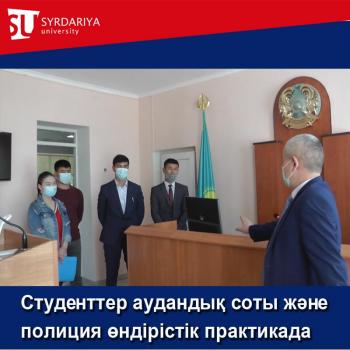 «Құқықтану» білім беру бағдарламасының Құқық–17 тобының 4 курс студенттері 2021 жылдың 25 қаңтар мен 3 сәуір аралығында өндірістік практикадан Жетісай аудандық соты мен Жетісай аудандық полиция бөлімін де өтілді.