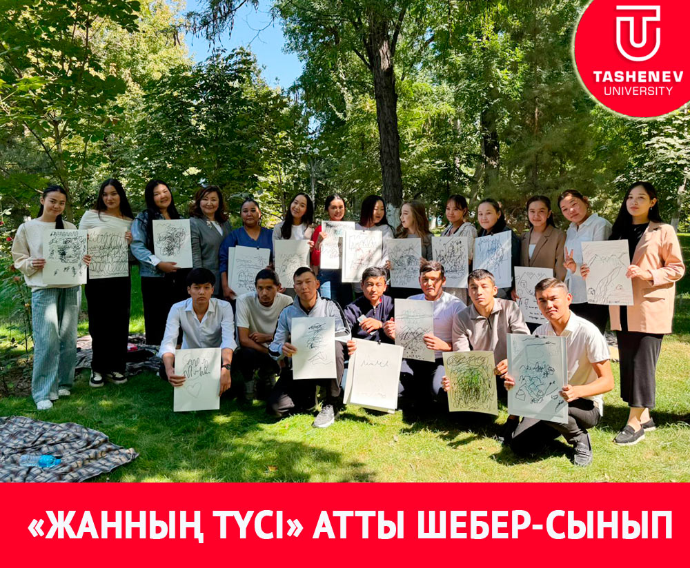 Ж.А.Тәшенев атындағы университеті «Бастауыш білім және өнер» факультеті, «Өнер және саз» кафедрасы 2024 жылдың 10-қыркүйекінде Шымкент қаласының Металлург мәдениет және демалыс саябағында музыкалық білім білім бағдарламасының бірінші курс студенттерімен креатор,өнертанушы, РһD докторы, кафедраның аға оқытушысы Есенова Ханзада Азимханқызының ұйымдастыруымен «Жанның түсі» атты тақырыпта шебер-сынып өткізілді. Студенттердің музыканы қабылдау ерекшелігін анықтау мақсатында тренинг жаттығулар жасалды.Қазақтың ұлттық аспабы қобыздың үнінен шыққан әуенді ақ қағаз бетіне түсіру және оны өзі таңдаған түспен бояу арқылы әр студенттің жеке басына мінездеме беріліп, көпшілік алдында талқыланды.Студенттер үшін бұл ерекше тренинг болды. Шебер-сынып өте тартымды әрі қызықты болды. Студенттер өздерінің ішкі түйсігінен туындаған суреттеріне талдау жасады.