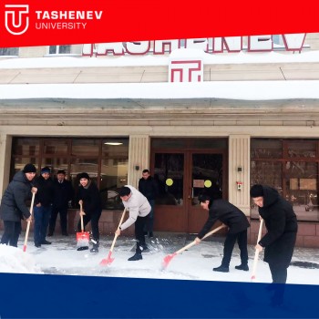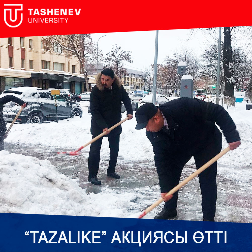 Толассыз жауған қардың салдарынан айналаны қар басып қалды. Шымкент қаласындағы мекемелерде ұйымдастырылып жатқан «Айналамызды қардан тазалайық» акциясына біздің университет оқытушылары да үлес қосты. Tashenev University жастар комитетінің ұйымдастыруымен өткен “Tazalike” акциясы аясында университет айналасын қардан тазалау жұмыстары жүргізілді.