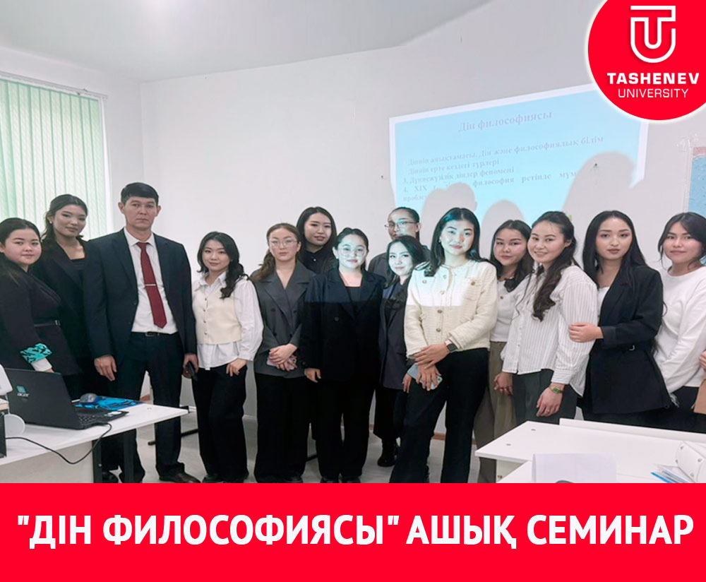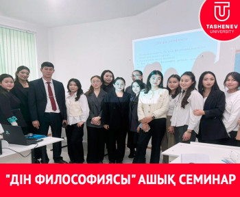 «Ж.А. Тәшенев атындағы университет» АҚ «Экономика және құқық» факультеті «Тарих және география» кафедрасының аға оқытушысы ғылы магистрі Қожабеков Нұржігіт Абубәкірұлы 05-желтоқсан күні 6В01301- Бастауышта оқыту педагогикасы мен әдістемесі» мамандығы 2-курс 23-5к,12,13 тобына «Философия» пәнінен "Дін философиясы" тақырыбында ашық семинар сабағын өткізді. Ашық сабаққа кафедра меңгерушісі т.ғ.к., қауым.профессор