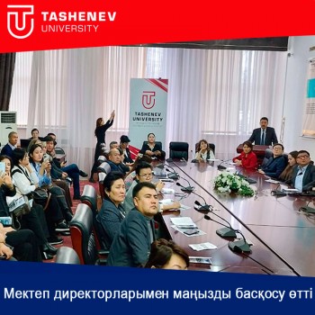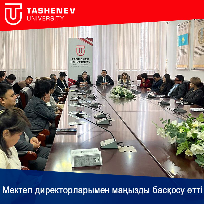 Басқосуда сөз алған универсиет ректоры Қанат Байболов оқу орнының қазіргі жағдайы мен даму преспективаларын сөз етті. Tashenev University білім беру, ғылым мен инновациялық қызметті заман талабына сай интеграциялау және жаңа білімді жасау негізінде елдің зияткерлік элитасын қалыптастыру барысында, жаңа Қазақстандағы жаңа серпіндегі университетіне айналу жолында үлкен ауқымды жобаларды жүзеге асырып жатқанын айтып өтті. Оның ішінде жаһандық бәсекеге қабілетті мамандарды дайындауда білім беру қызметін модерницазиялау, инновациялық білім беру бағдарламалары, еңбек нарығында сұранысқа ие мамандықтарды ашу бойынша жоспарлар бар.