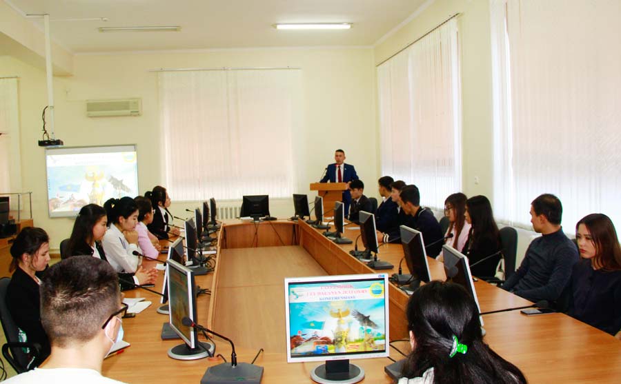 "Тәуелсіздік. Ұлы даланың жеті қыры" атты бүгінгі студент-жастар конференциясы жақында Елбасы жариялаған Мақаладағы мәселелерге арналды. Ең алдымен "Тәуелсіздікке" қол жеткізгенге дейінгі тарихи оқиғалар мен жағдайлар бейнефильм арқылы көрсетіліп, бүгінгі бейбіт заманның оңайлықпен келмегені тағы да бір дәйектеле түсті.