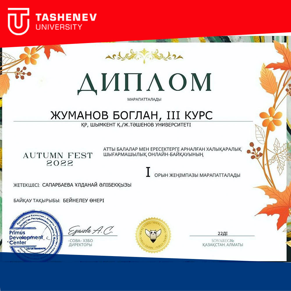 «Технология және дизайн» факультетіндегі «Көркем еңбек және сызу мұғалімдерін даярлау» мамандығы бойынша білім алып жүрген 3-курстың студенті Бағлан Жұманов университет мақтаныштарының бірі.