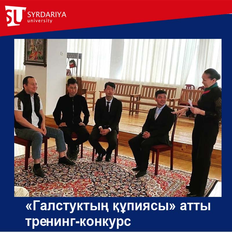 2021 жылдың 14 сәуір күні ер балаларға арналған «Галстуктың құпиясы» атты тренинг-конкурс өткізді. Студенттер галстуктың құпиясы мен түсіне және киілетін костюмнің стиліне сай келуі жөнінде тапсырмалар мен жаттығуларды орындады. Тренинг тапсырмаларынан сүрінбей өткен студентке «Сырбаз жігіт» марапаты берілді.