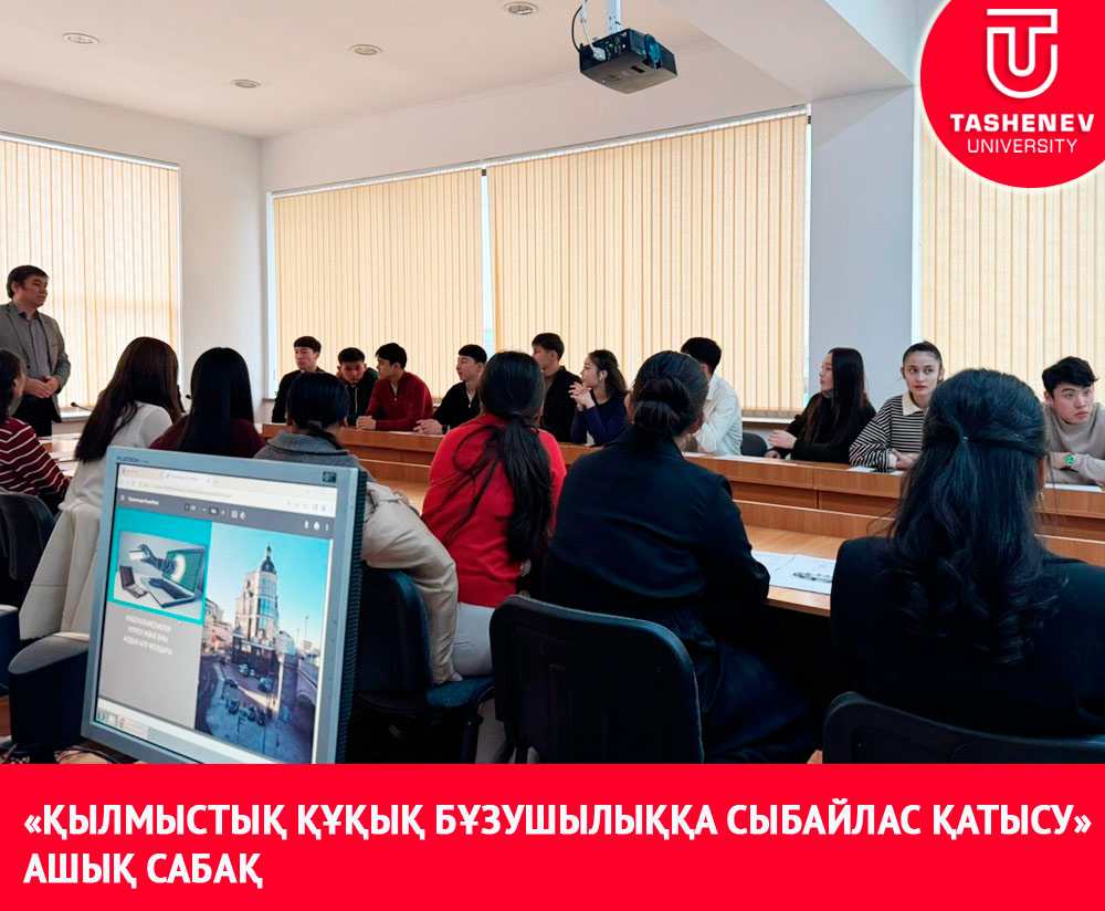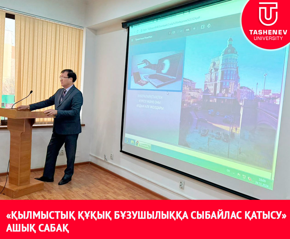 «Құқық және бизнес» кафедрасының аға оқытушысы, з.ғ.к. Е.Н. Турашев 15 қараша 2024 жылы сағат 15-00 аудитория 314 «ҚР-сы Қылмыстық құқығы» пәнінен «Қылмыстық құқық бұзушылыққа сыбайлас қатысу» тақырыбында «6В04201-Құқықтану» білім беру бағдарламасының 2 курс ИЭФ-23-5к6, ИЭФ-23-5к7, ИЭФ-23-5к8, ИЭФ-23-5к9, ИЭФ-23-5к10 топтарының студенттеріне ашық дәріс сабағын өткізді. Дәрісте студенттерге аталған қылмыстық құқыққа қатыстылық ұғымымен, оның түрлерімен, ерекшеліктерімен және салдарымен таныстырды. Дәріс барысында қылмыс жасауға қатыстылық нысандары, қатыстылықты реттейтін қылмыстық нормалар және осы құқық бұзушылық үшін берілетін қылмыстық жазалар жан-жақты қарастырылды.