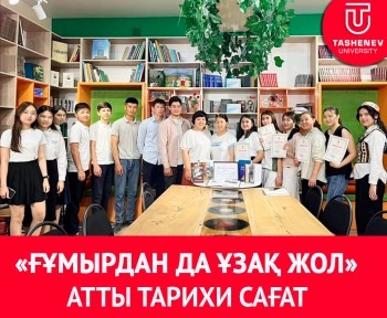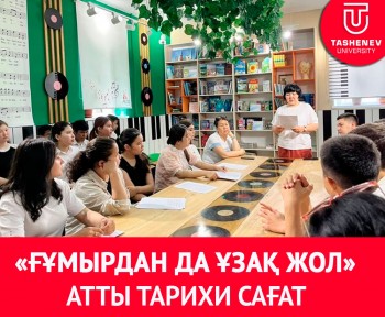 Тарих және география кафедрасының аға оқытушысы Турумбетова Г.А. ұйымдастыруымен XX ғасыр басындағы ірі саяси тұлға, көрнекті қоғам қайраткері, теміржол инженері, тарихшы Мұхамеджан Тынышбаевтың туғанына 145 жыл толуына орай №2 кітапхана бөлімшесі Ж.А.Тәшенов атындағы университетпен бірлесіп «Ғұмырдан да ұзақ жол» атты тарихи сағат ұйымдастырды.