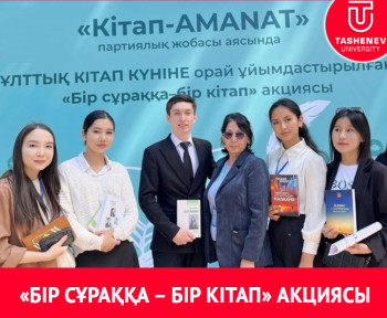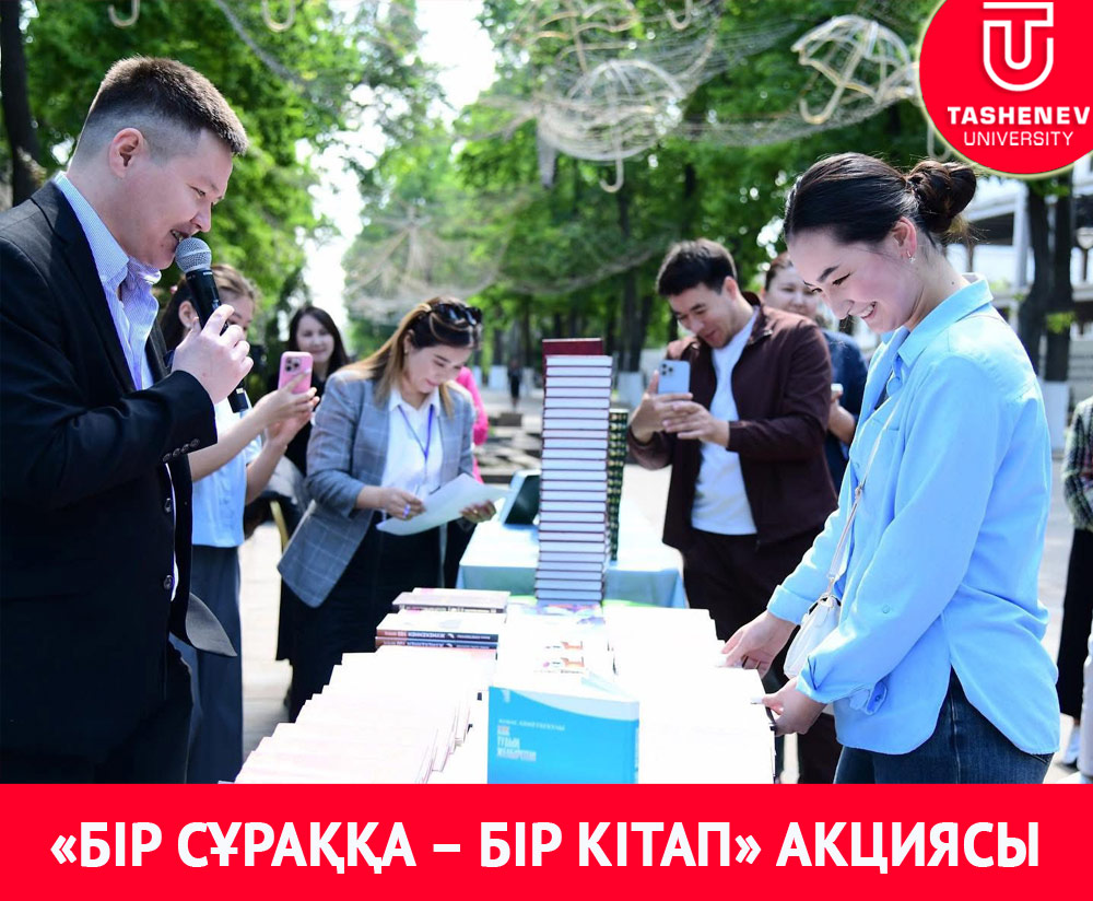 ЖҰМАБЕК ТӘШЕНЕВ АТЫНДАҒЫ УНИВЕРСИТЕТ СТУДЕНТТЕРІ «БІР СҰРАҚҚА – БІР КІТАП» АКЦИЯСЫНА ҚАТЫСТЫ