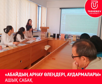 «Қазақ тілі мен әдебиеті» кафедрасының оқытушысы, филология ғылымдарының кандидаты, қауымдастырылған профессор (доцент) м.а. Л.У.Абенова «ХІХ ғасырдағы қазақ әдебиеті» пәнінен «Абайдың арнау өлеңдері, аудармалары» тақырыбында Фи-22-1к оқу тобына ашық сабақ өткізді. Сабақтың мақсаты: Студенттерге поэзия саласында арнау өлеңдерінің атқарар қызметінің ерекше, бөлек және биік екендігін жеткізу. Сонымен бірге ақынның әр өлеңінің шығу тарихына, нақты кімге, қашан жазылғаны, дәл сол кезде автордың өмірінде қандай оқиғалар болып жатты деген мәселелерге көңіл бөліну. Бұл жерде сөз бен ойдың бірлігін әдемі бейнелеуі, көркем әдебиеттің болмыс бітімі, сыры мен сипатын маңызын пайымдау. Абайды - қазақ әдебиетіне аударма саласын енгізген ақын ретінде таныту.
