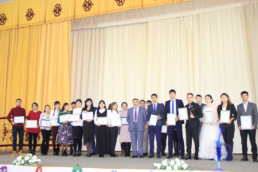 Ректор Дайырбеков Серік Сансызбайұлы студенттерді жаңа жыл мерекесімен құттықтай отырып, жылдың нәтижесі бойынша 23 оқу үздіктері және Бжғм-нің ғылыми-зерттеу жұмыстары байқауының жеңімпаздары, 18 әлеуметтік жағдайы төмен студенттер, 7 "жылдың номинация иегері" студентке 1 айлық шәкіртақы көлемінде сыйақымен марапаттады.