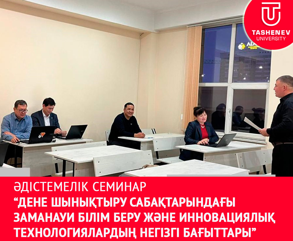 29.11.2024 күні Ж.А.Ташенев атындағы университеті “Өнер және спорт” факультеті “Дене шынықтыруды оқытудың теориясы мен әдістемесі” кафедрасының аға оқытушысы, ғылым магистры А.Р. Юсупов ПОҚ құрамына “Дене шынықтыру” пәні бойынша “Дене шынықтыру сабақтарындағы заманауи білім беру және инновациялық технологиялардың негізгі бағыттары” тақырыбында әдістемелік семинар өткізді. Сабаққа кафедра ПОҚ қатысып, оқытушынын сабақ барысында жаңа тақырыптың теориялық бөлімін толық қамтып, өзара тығыз байланыс болғанын жоғары бағалады.
