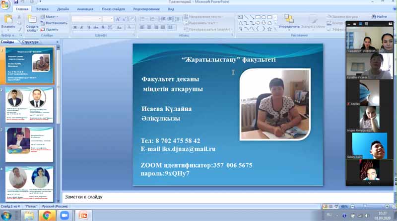 Құттықтау сөздерімен басталған бұл жиында факультет басшылары студенттерді университеттің профессор-оқытушылық құрамымен, кураторлармен таныстыра отырып, қашықтан оқыту барысында жұмыс жасайтын бағдарламалар (Platonus, zoom, webex) жөнінде тың ақпараттар беріп өтті.