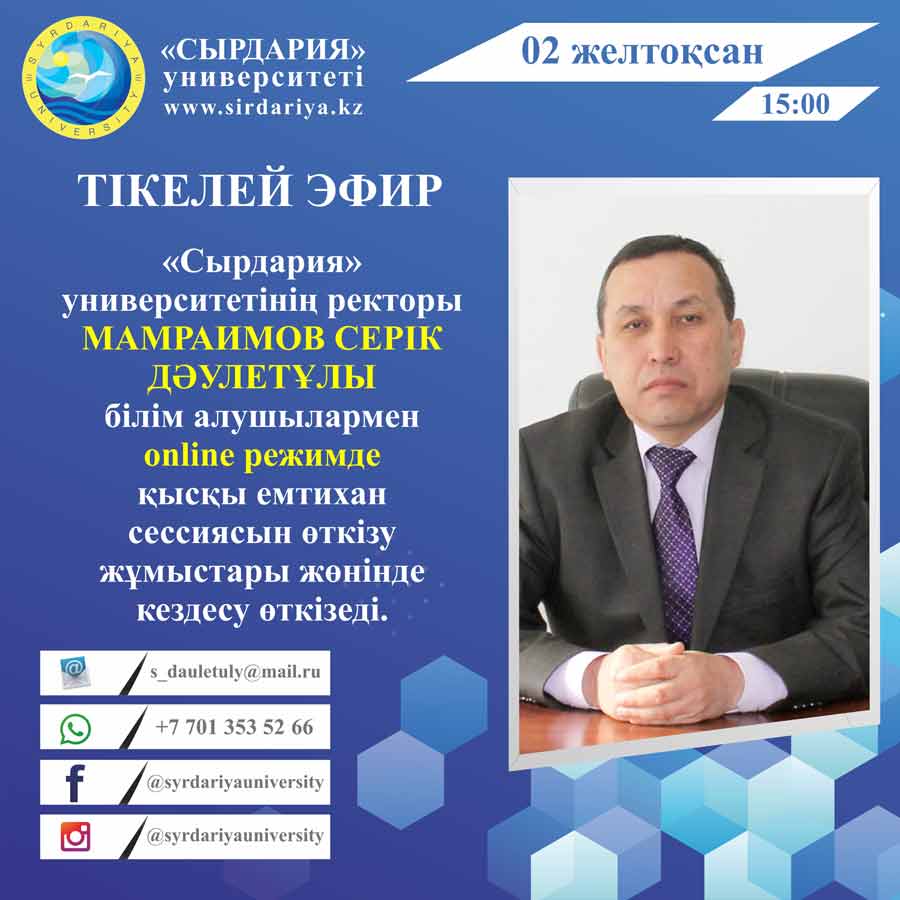 «Сырдария» университетінде ректордың студенттермен қысқы емтиханды өткізу ережелері бойынша онлайн кездесуі өтті