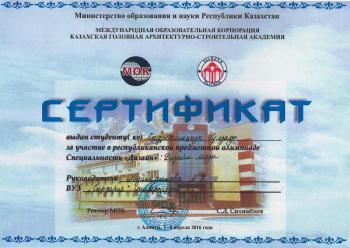 Призер республиканской предметной олимпиады "Дизайн моды"