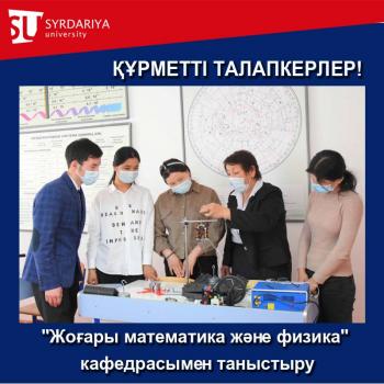Құрметті талапкерлер! "Жоғары математика және физика" кафедрасымен таныс болыңыз