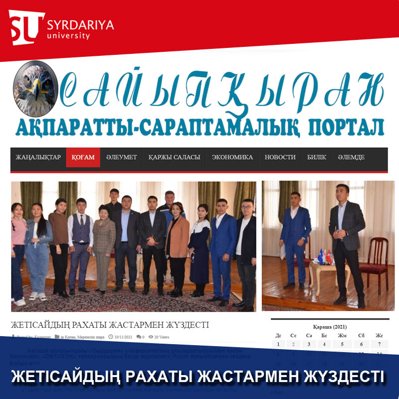 Жетісай қаласындағы «Сырдария» университетінің ұйымдастыруымен қоғам белсендісі, «ONTUSTIK» телеарнасының белді журналисті Рахат Арғынбаймен кездесу болып өтті.