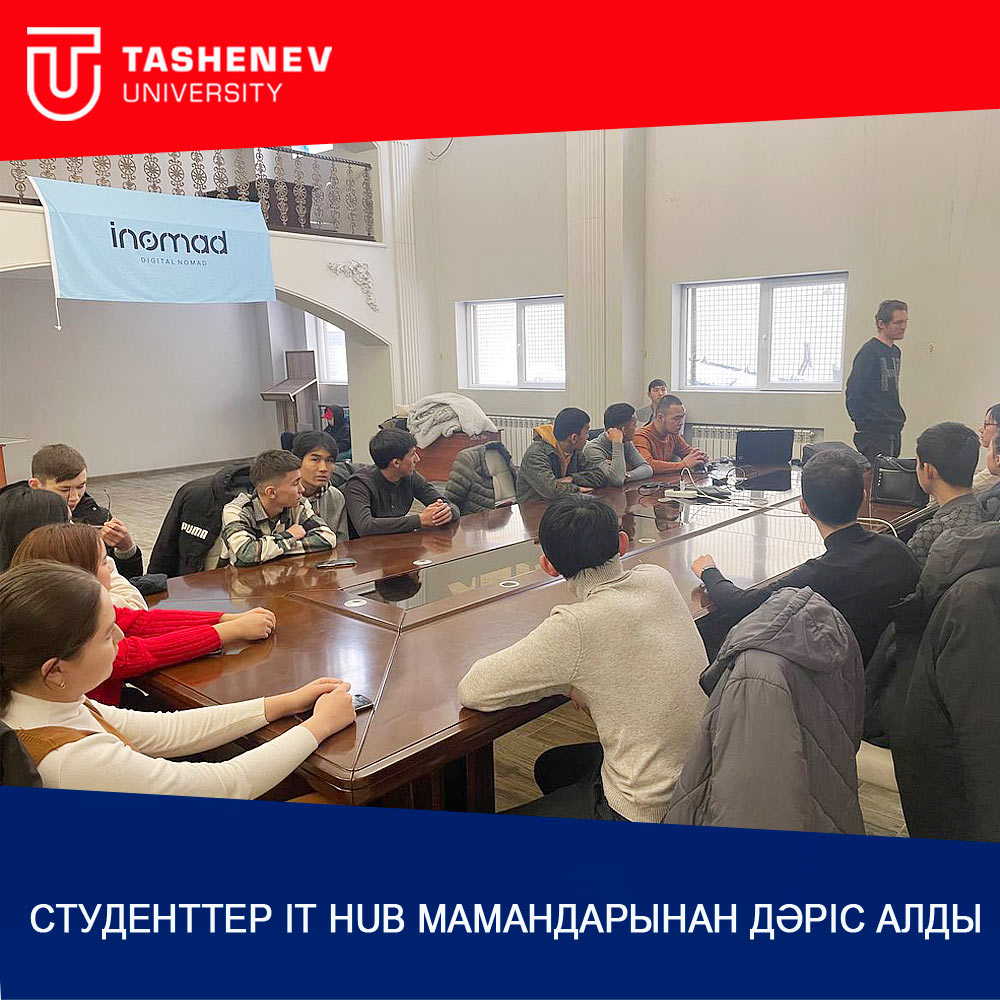 Tashenev University жанындағы IT Hub мамандары «IT менеджмент» мамандығы бойынша білім алып жүрген 1-курс студенттерімен біліктілікті арттыру дәрісін өткізді.