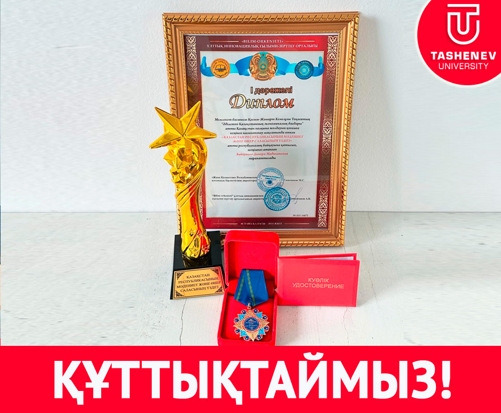 Мемлекет басшысы Қасым-Жомарт Кемелұлы Тоқаевтың «Әділетті Қазақстанның экономикалық дағдары»атты Қазақстан халқына жолдауын қоғамға кеңінен насихаттау мақсатында өткен ҚАЗАҚСТАН РЕСПУБЛИКАСЫНЫҢ МӘДЕНИЕТ ЖӘНЕ ӨНЕР САЛАСЫНЫҢ ҮЗДІГІ» атты республикалық байқауына Ж.А.Ташенев университетінің «Бастауыш білім және өнер» факультеті, «Өнер және саз» кафедрасының магистр,аға оқытушысы Байгунова Динара Мадихановна қатысып, І-дәрежелі дипломмен,статуэткасы және төсбелгісімен марапатталды.
