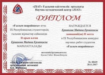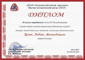 2017 жылы "Ғылым шарайнасы" атты студенттердің ғылыми-зертеу жұмыстарының жеңімпаздары