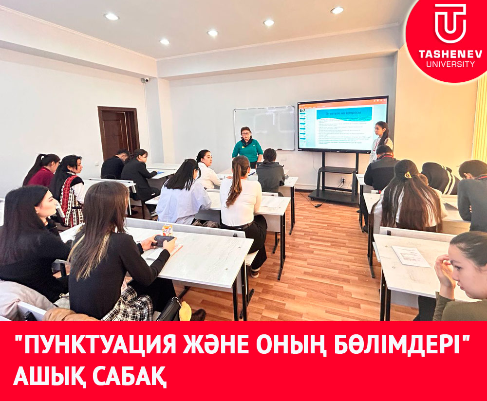 17 наурызда "Орфография және пунктуацияның қиын мәселелері" пәні аясында оқытушы З.О. Азбергенованың ФИ 24-2р тобында "Пунктуация және оның бөлімдері. Тыныс белгілерінің тарихынан " тақырыбында ашық сабағы өтті.