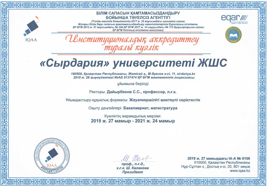 "ҚР ЖОО-на деген сұранысының ұлттық рейтингі – 2019" бойынша аккредиттелуге елімізде қатысқан 87 жоғары оқу орны арасында үздік деп танылған "ТОП-20" басты рейтингісінің нәтижесінде "Сырдария" университеті 16-орынды иеленіп отыр. Бұл, әрине, еліміздегі ЖОО арасындағы беделіміздің көрсеткіші деуімізге болады.