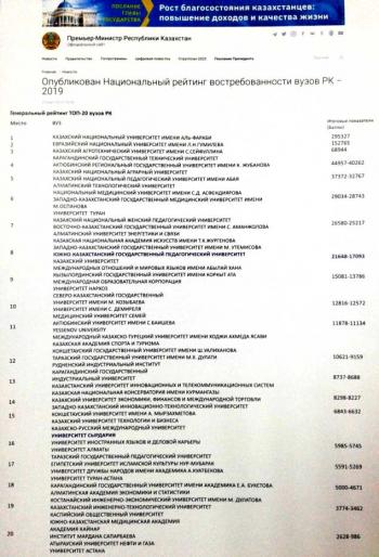 "ҚР ЖОО-на деген сұранысының ұлттық рейтингі – 2019" республиканың жоғары оқу орындарының ерекшеліктерін, сондай-ақ олардың алуан түрлілігін ескереді. Рейтингтік зерттеу – мамандарды даярлаудың деңгейлері мен бағыттары бойынша білім беру бағдарламаларының сапасын бағалау білім беру қызметтерінің бәсекеге қабілеттілігінің өсуіне ықпал ететін және қазақстандық жұртшылықты Білім беру сапасының нарық талаптарына сәйкестік дәрежесі, оқытушылардың танылуы және ЖОО-ның ғылыми-зерттеу қызметінің нәтижелілігі туралы ақпаратпен қамтамасыз ететін сапаны арттыру мақсатында жүргізіледі.