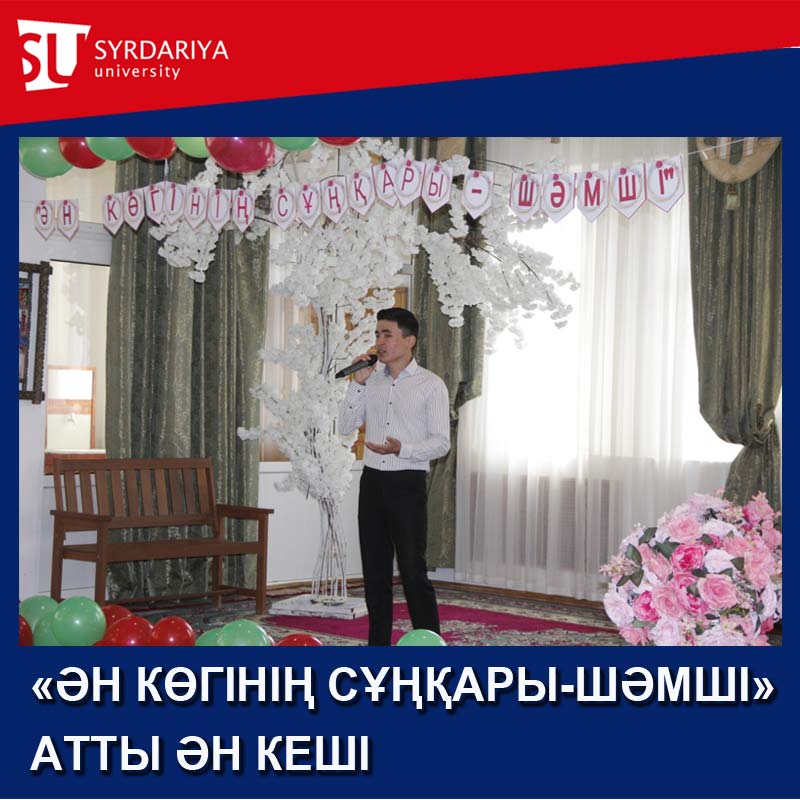 Көктемнің шуақты күнінде өткен бұл ән кешіне «Дизайн» білім беру бағдарламасының студенттері «Көктем шуағы» атты сәндік көйлектер коллекциясын шығарды. Ұлы тұлғаға арналған осындай кешті өткізуге белсене атсалысқан студенттерімізге шығармашылық табыс тілейміз.