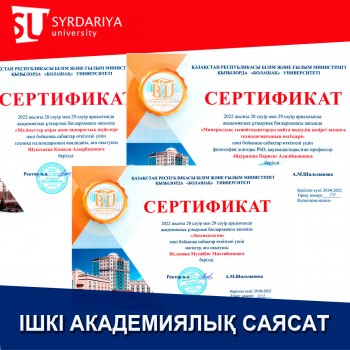 Профессор–оқытушылардың ішкі академиялық ұтқырлық бағдарламасына қатысуын жұзеге асыру мақсатында: «Сырдария» университеті мен Қызылорда «Болашақ» университеті арасындағы екі жақты келісім шарт негізінде 2022 жылдың 20-29 сәуір оқу мерзімі аралығында университетіміздің профессор-оқытушылары, дәріс оқып, сертификаттармен марапатталды: