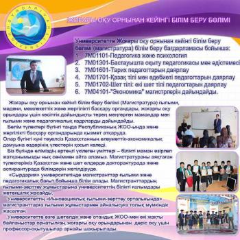 Жоғары оқу орнынан кейінгі білім беру бөлімі сіздерді оқуға шақырады!