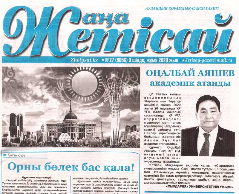 ҚР Ұлттық ғылым академиясының Жарғысы мен Төралқа шешіміне сәйкес, 2020 жылы 26 маусымда ҚР ҰҒА корреспондент-мүшелері мен толық мүшелерінің (академик) кезекті сайлауы өтті. Сайлау қорытындысы бойынша жерлесіміз Аяшев Оңалбай академик атағын алды.