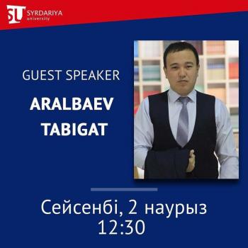 Спикер: Табигат Аралбаев - выпускник университета "Сырдария", президент дискуссионного клуба «Жалын» Жетысайского района, победитель областного конкурса «Лучший молодой педагог - 2019».