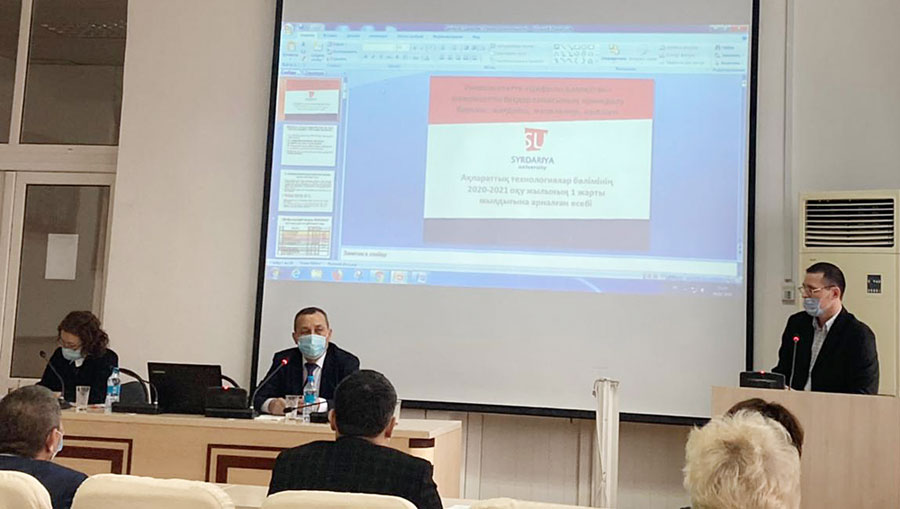 24 февраля на заседании Ученого совета была продемонстрирована презентация по теме «Реализация госпрограммы «Цифровой Казахстан» в университете: состояние, проблемы, направления деятельности». В ходе выступления рассматривались: основные направления деятельности отдела информационных технологий, SWOT анализ и проект постановление. Членами Совета была отмечена качественная работа отдела.