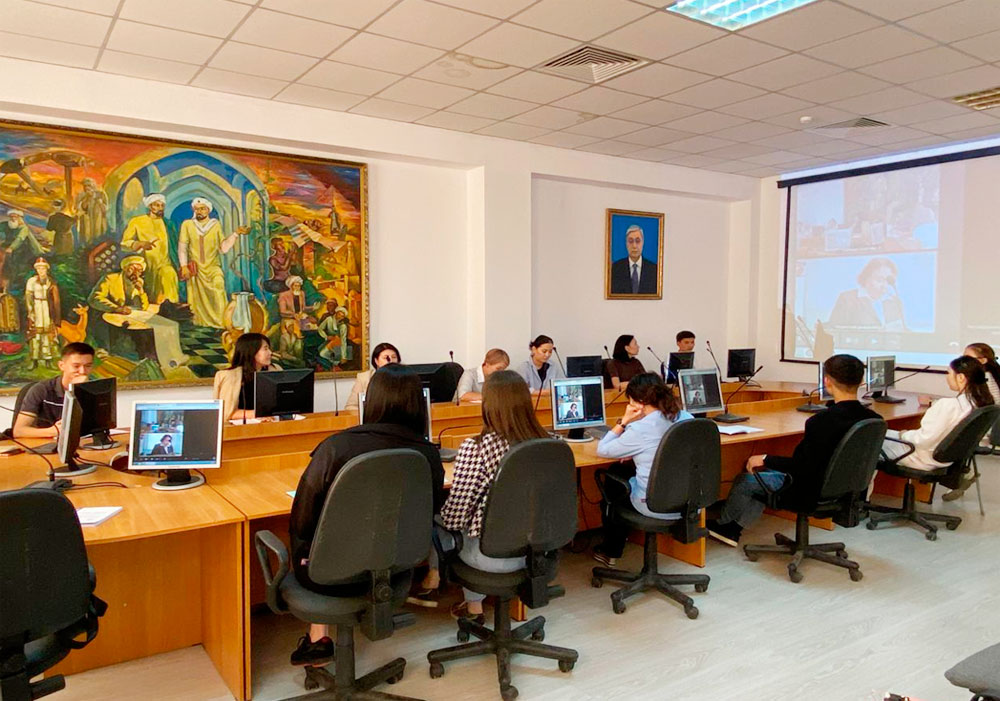 В ходе телемоста ППС кафедры обменялись опытом с московскими коллегами, обсудили актуальные вопросы языкознания и преподавания языков. Заведующая кафедрой PhD Артыкбаева Ф. И. зачитала доклад по своей исследовательской работе, обсуждали психолингвистические исследования в области теории сознания и межкультурной коммуникации, магистранты задавали вопросы об зарубежном образовании, слушали концепции ученых. Телемост перерос в оживленную дискуссию.