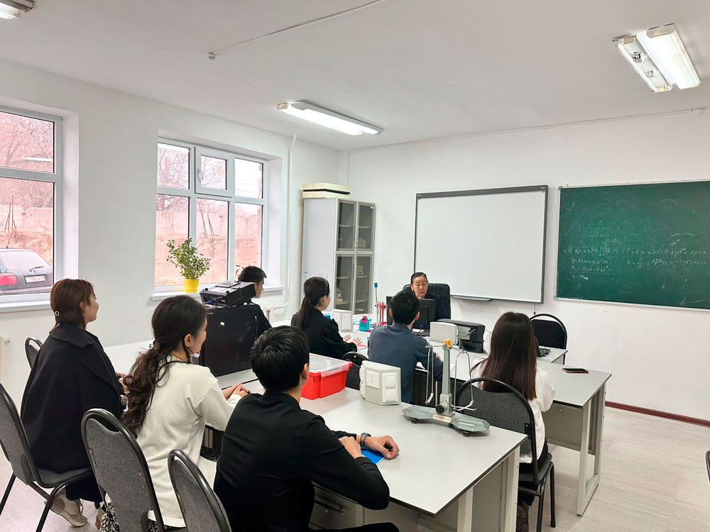 Кафедра оснащена современными компьютерными классами, интерактивными досками, подключенными к сети Интернет. Лаборатория по изучению механики и молекулярной физики оснащена необходимой аппаратурой для проведения экспериментов, лабораторных работ по определению ускорения свободного падения с помощью машины Атвуда и определения углов между силами. На занятиях студенты свободно практикуют законы электричества и напряжения и проводят исследования в своей области. Учебный процесс обеспечен всеми необходимыми учебными и методическими материалами, учебниками и литературой. - Преподаватели кафедры