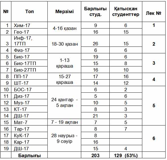 В первом полугодии курсы проводились в 4 потока (10 групп, 94 студента), во втором полугодии в 2 потока (5 групп, 28 студентов).