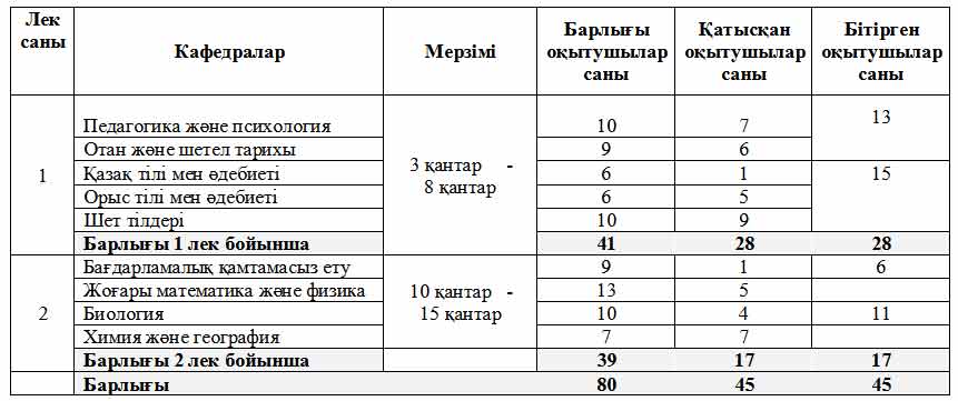 С 3 по 15 января был организован курс повышения квалификации для преподавателей университета. Количество учащихся составило 80 преподавателей, распределённых в два потока. Ниже в таблице приведены сведения о курсе.