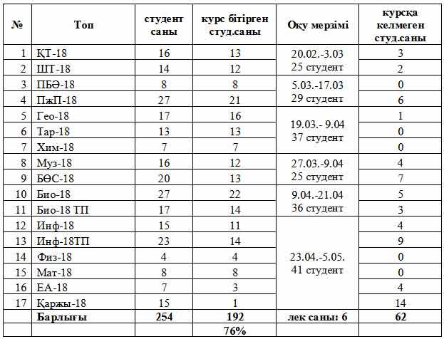 Обучение было распределено на 6 потоков, в которых обучилось 192 студента из приглашенных 254, т.е. сертификаты получили 76% от общего контингента студентов.